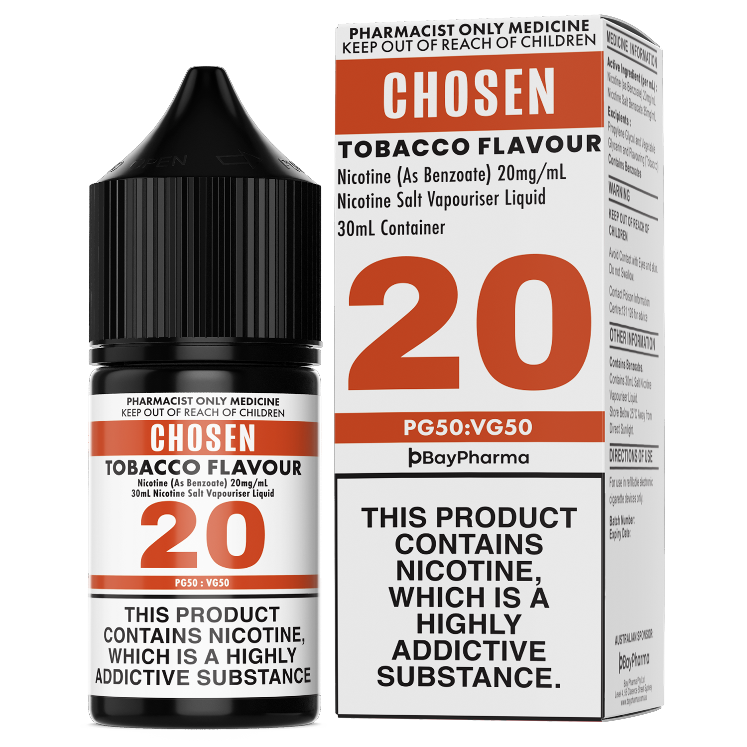 - 20mg - Nicotine: 20mg/ml, Nicotine Benzoate: 35mg/ml